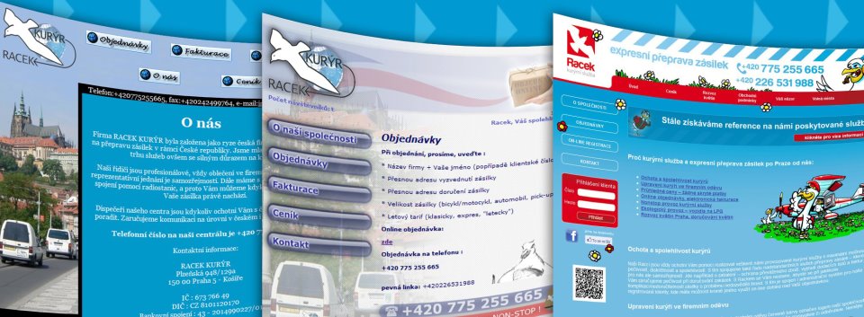 Vývoj webový stránek spol. Racek kurýr od r.2007